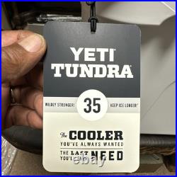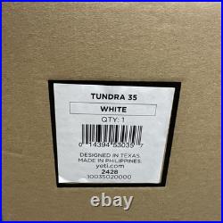 This is a brand new Yeti Tundra 35 cooler in white. It is a top-of-the-line model from Uline, a trusted name in camping and outdoor gear.